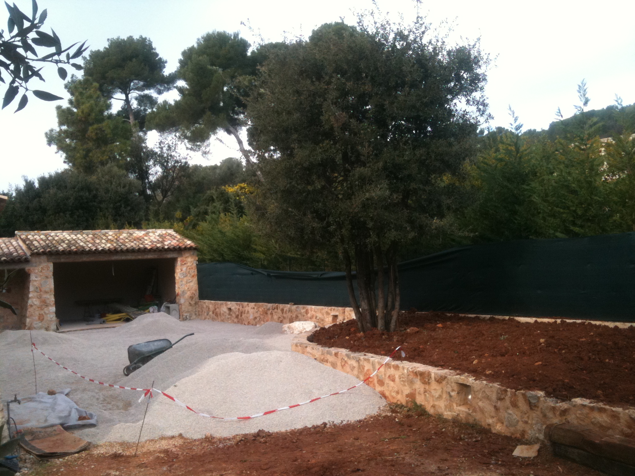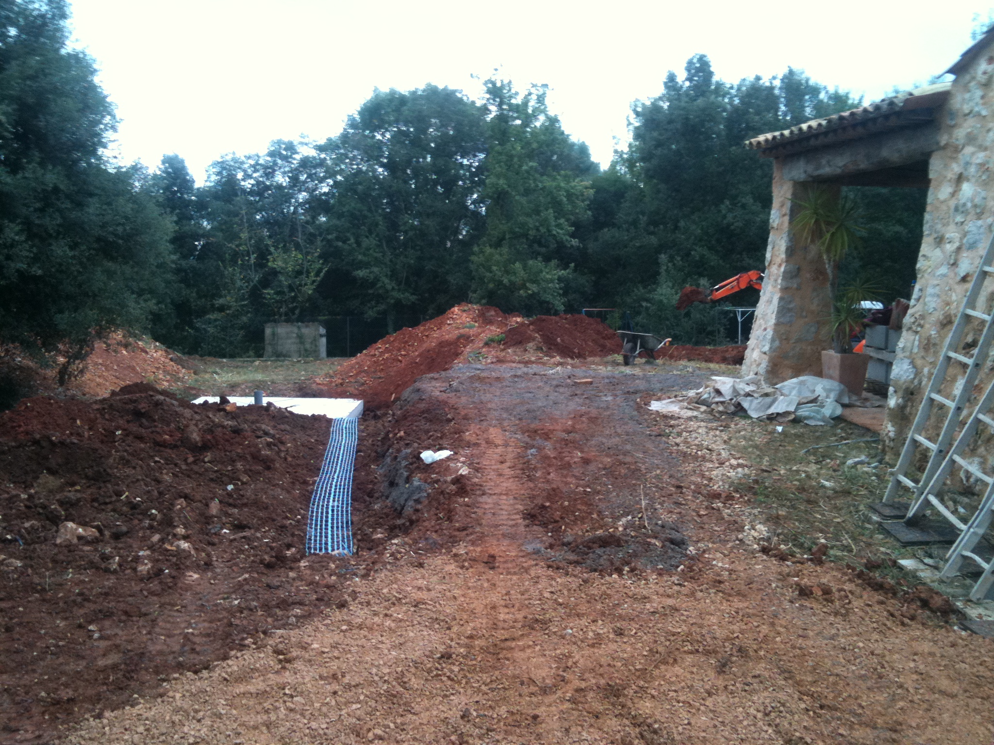Ces travaux ont consisté en la création d’un puisard et pose de drains.La a fallu pour ce chantier terrasser et remettre en état tout le jardin à la fin des travaux: